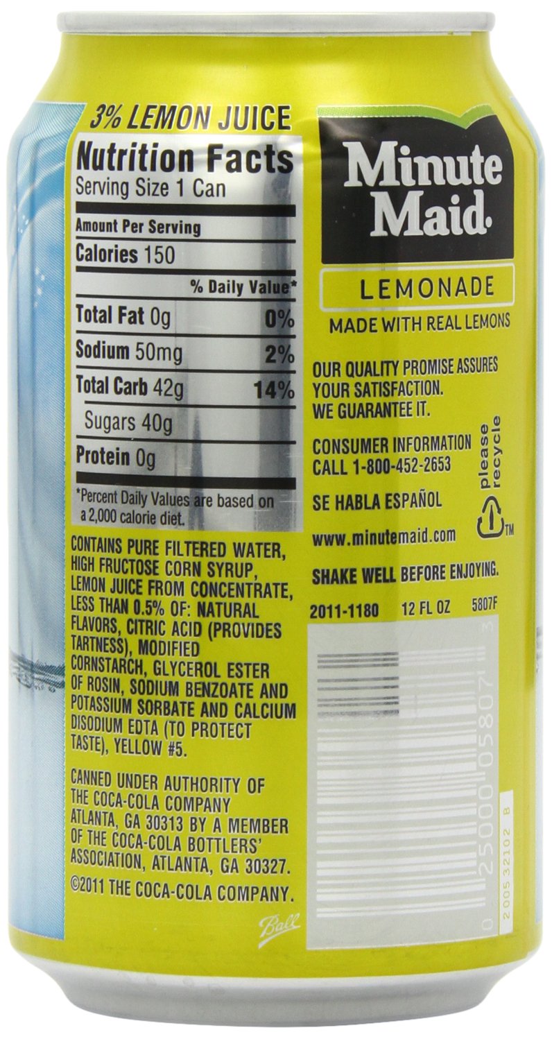 Minute maid lemonade nutrition label. Minute Maid Lemonade - Open Food Facts 25 Jul 2018 — Minute Maid Lemonade ; Energy, 628 kj (150 kcal) ; Fat, 0 g ; Saturated fat, 0 g ; Carbohydrates, 42 g ; Sugars, 40 g ... Minute maid, lemonade by The Minute Maid Company Minute maid, lemonade by The Minute Maid Company nutrition facts and analysis per 6 oza (177.0 ml) aprx (177.0 g) ; Vitamins · Vitamin C [Ascorbic acid], 60.0 mg ... Nutrition Facts for Minute Maid Lemonade Minute Maid Lemonade · Calories 110 6% DV · Protein 0g 0% DV · Carbs 29g 10% DV · Fat 0g 0% DV · Fiber 0g 0% DV · Sugar 28g 56% DV.