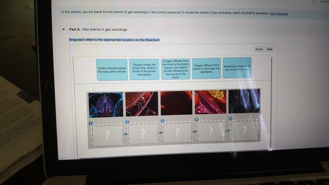 Solved BioFlix Activity: Gas Exchange -- Key Events in Gas - Chegg Question: BioFlix Activity: Gas Exchange -- Key Events in Gas Exchange Part A - Key events in gas exchange Drag each label to the appropriate location on the flowchart. Reset Help Oxygen diffuses from alveoli in the lungs into capillarios Oxygen enters rod blood cells, where it binds to the protein hemoglobin Oxygen diffuses from the blood to the body's tissues, and Unit 3 respiratory system and gas exchange - SlideShare 17. gas exchange between gas exchange between air in lungs and blood blood and tissue fluid movement driven by movement driven by diffusion gradient. ( [] to diffusion gradient. ( [] []) to []) gasses exerts gasses exerts pressure, the amount pressure, the amount of of pressure each gas pressure each gas exerts exerts is called - is … Part a key events in gas exchange drag each label to - Course Hero Part A - Key events in gas exchange Drag each label to the appropriate location on the flowchart. ANSWER: alveolar macrophages surfactant water pleural fluid talking crying exercise increased body temperature amount of O 2 and CO 2 in the blood ::Grade Results 1 Ims.graderesults.co... - Anatomy and Physiology to review the events of gas exchange, watch this bioflix animation: gas exchange ament sharing settings part a - key events in gas exchange ee tools > drag each label to the appropriate location on the flowchart. anual reset help oxygen diffuses from the blood to the body's tissues, and carbon dioxide diffuses from the tissues to the blood oxygen …