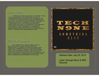 Strange Music Inc. Artist - Tech N9ne The independent underground would not be what it is today without pioneers like Strange Music cofounder Tech N9ne. Tech's unparalleled tour schedule and signature rapid-fire "chopper" style combined with the business acumen of Strange Music CEO Travis O'Guin have molded Strange Music into the number one independent hip-hop label in the world.