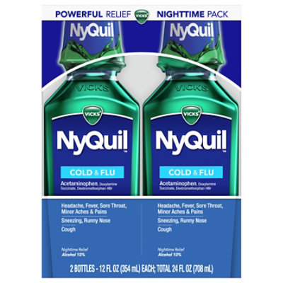 VICKS ® NyQuil ® COLD & FLU - DailyMed VICKS NYQUIL COLD AND FLU NIGHTTIME RELIEF- acetaminophen, dextromethorphan hydrobromide, ... Overdose warning. Taking more than directed can cause serious health problems. In case of overdose, get medical help or contact a Poison Control Center right away. Quick medical attention is critical for adults & for children even if you do not notice ...