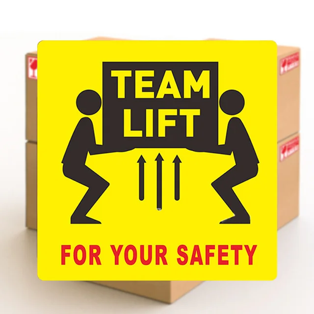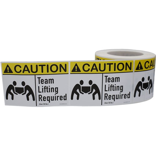 Caution Heavy Team Lift 3 x 5 - Label Roll - Creative Safety Supply Description Caution Heavy Team Lift 3 x 5 - Label Roll These cost effective labels come with 500 labels per roll and are useful for marking packages or notifying employees about potential product hazards. Reduce product damage and/or injury by marking products with special shipping and handling instructions such as not to double stack a product.