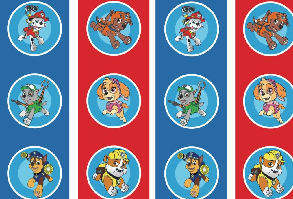 FREE Paw Patrol Printables [Party, Games & More] Water Bottle Labels These wrap-around labels have Ryder and the Pups with the Lookout Tower in the background. (via All Free Printable) Popcorn Box This blue snack box is just one of the handful of free Paw Patrol party printables you can find, including candy bar wrappers and Hershey kiss stickers. (via Hale Grafx) Photo Booth Props