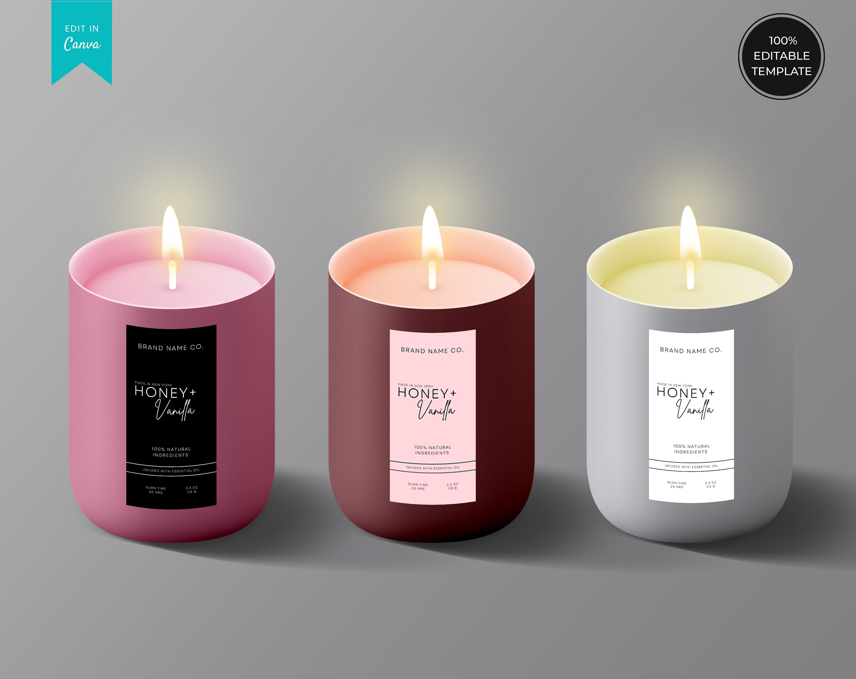 Printable Candle Label Template, Square 3x3" Sticker Avery 94101, Easy Editable Instant Download Digital File DIY PDF, Simple Product Design
