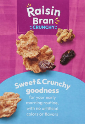 Kellogg's® Raisin Bran Crunch® cereal - SmartLabel™ Magnesium. 10%. Zinc. 10%. Copper. 25%. Manganese. 80%. *The % Daily Value (DV) tells you how much a ... Kellogg's Raisin Bran Crunch cereal Kellogg's® Raisin Bran Crunch® cereal 4.8 (516) Write a review About this item: Details Nutrition Facts & Ingredients Where To Buy Highlights This truly tasty blend of wheat bran flakes, delicious raisins and honey-oat granola clusters makes every serving sweet, crunchy and unforgettable. VIEW BRAND SITE Featured Recipes Raisin Bran Crunch Nutrition Facts - Eat This Much Amount of glucose in Raisin Bran Crunch: Glucose 20g. How much protein is in Raisin Bran Crunch? Amount of protein in Raisin Bran Crunch: Protein 3.2g. Vitamins and minerals. How much Vitamin A is in Raisin Bran Crunch? Amount of Vitamin A in Raisin Bran Crunch: Vitamin A 99μg.